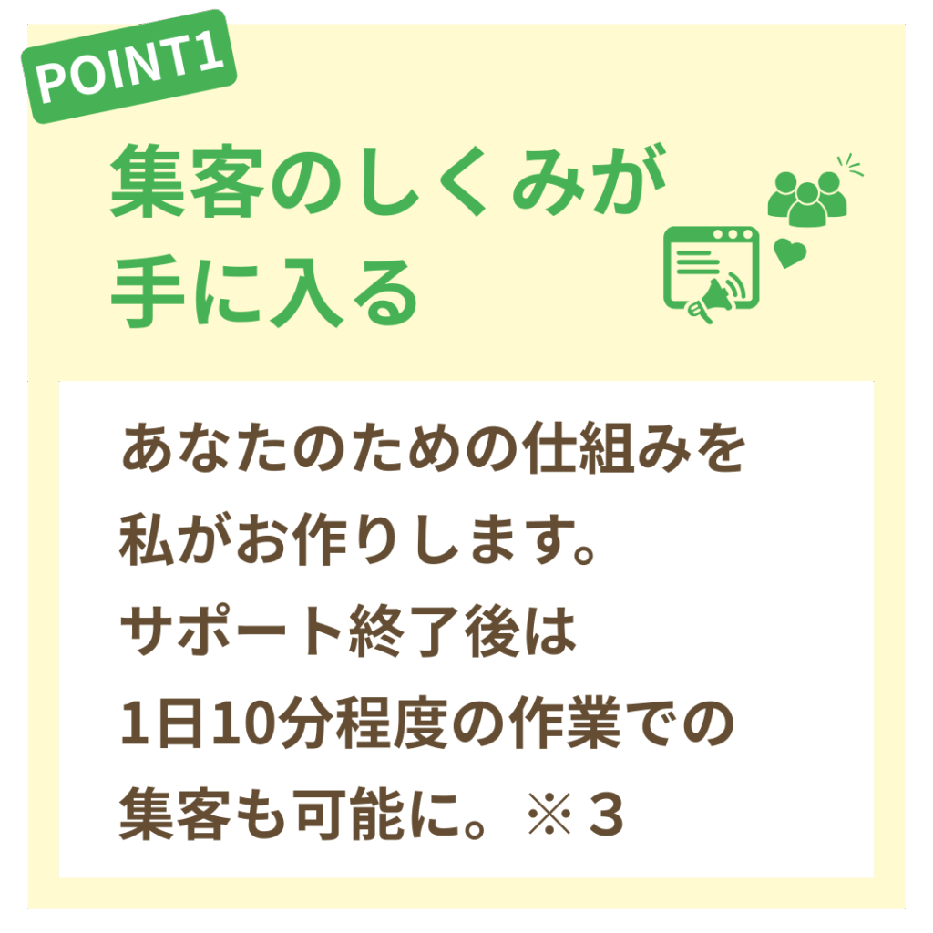 個別無料相談はこちら 私は、本気で “あなたのサービスを悩んでいる人に届けること、買ってもらうこと” を一番に考えています。そこに、私へのご依頼の有無は関係ありません。あなたに今必要なのが HOW TO なら──集客の仕組みのつくり方をまとめて、全てお渡しします。 プレゼントはこちら プレゼント内容 プレゼントはこちら このようなお悩みはございませんか? 技術は学んだけど、集客法がわからない SNSを投稿しても集客に繋がらない 自信がなくて不安。動きたくても動けない HPが自分の想いや魅力を伝えきれていない 外注しても、ヒアリングが少なく思ってたものにならなかった 相談相手がおらず、自分で考えて悶々としている どうしたら自分を必要としてくれる方と出会えるんだろう…起業って不安の連続… 心から相談に乗ってくれる、集客のプロと一緒に安心ワクワクの中で前進したい!! 個別無料相談はこちら 本氣で向き合い、本氣でつくる。 だから納得感を感じながら、安心ワクワクの中で進んで行ける。 ※字幕あり音声無しでも視聴可能です。 個別無料相談はこちら 3つのポイント ※3 運用状況や売上目標などによって作業時間は変動します。 個別無料相談はこちら クライアント様のお声 傾聴講師 / 公認心理士 川畑 明絵 様 どのようなホームページを望んでいるのか自分自身でも全くイメージが無かったため、ホームページを作成することが最初は不安でした。しかし、私が仕事を通してどのようなことを実現したいのかとても丁寧に聴いてくださり、その上で細かいやり取りをながら作成して頂きましたが、最終的には自分らしい素敵なホームページが出来上がりびっくりしました。あの会話のやり取りの中で、本多さんが私の仕事のイメージを膨らませてくださったんだ、と後から気付きました。完成後は、自分でどのようにホームページの管理をしていけば良いのかもオンラインで時間をかけて説明してくださり、とてもありがたかったです。柔らかい雰囲気で、とても親切に察してくださり、終始安心感があったことが印象深かったです。ありがとうございました。 心理カウンセラー ばった様 初めてのHP作成依頼で正直ちょっとドキドキでしたが、ことさんがすごく丁寧に接してくださり、素人の自分でも「大丈夫そうだな」と安心できたのを今でも覚えています。今回のHP作成を機に、現代社会や子育て、介護に悩む多くの人達を救うきっかけになれば最高です。本当にありがとうございました! 公認心理師 浅見結花様 言葉でうまく表現出来なかった部分も、こちらの期待を遥かに上回る形でデザインに落とし込んでくださりkotoさんに依頼して良かった~と心から思っています☺️✨細部の微調整もこちらが納得がいくまで親身に対応してくださり、次回もデザインは絶対kotoさんに依頼する❣️と決めています。最後まで気持ちよくサポートしてくださり本当にありがとうございました💓 スクール運営 藤沼水起様 今回で3度目のホームページリニューアル。今までは自分で提案してホームページを作ってもらっていたという感じだったので、サロンやスクールの良さをお客様に伝えられていないなと思っていました。ご縁あって古都代さんにお願いすることになったのですが、はじめからきちんとヒアリングをしてくださり、こちらも安心して希望を正直に言うことができました。違和感があるときは提案してくださり、細かいところまで気を使ってくださるので、2人で作った愛着の湧くホームページができたと思います!今までで1番いいものができたと大満足です。ありがとうございました。 個別無料相談はこちら 個別無料相談 研修や本業に追われ集客の時間がない 行動しているが反応がない イメージするものを思うように作れない プロに、集客のしくみを作ってほしい 心にある想いを膨らめ整理して形にしたい 納得感と安心感の中でどんどん前進したい ひとつでも当てはまったらぜひお話しに来てください。集客のお悩み、どんなことでもOKです。・何を発信すればいいか分からない ・SNSやHPを作ったけど反応がない ・今のやり方が合っているか不安 個別の無料相談で、1時間しっかりお話を伺います。今の状況を整理して、次に踏み出す一歩を一緒に見つけましょう! 個別無料相談はこちら 個別無料相談の流れ LINE友だち追加 1 下記より公式LINEへ登録ください。個別無料相談のご案内を差し上げます。 友だち追加 ご予約 2 ご予約フォームをお送り致します。ご都合の良いお日にちでご予約ください。 個別無料相談 3 ご予約日当日Googlemeetでお話させていただきます。Googlemeetの接続方法が不明の場合はご案内いたしますのでご安心くださいね。 個別無料相談の最後に【心でつながる集客の仕組みをつくる Co-create プラン】をご紹介させていただきます。無理な営業は一切ございません。あなたに必要がないと感じたら、ぜひお気軽にお断りください。しかし、ご依頼くださった際には本